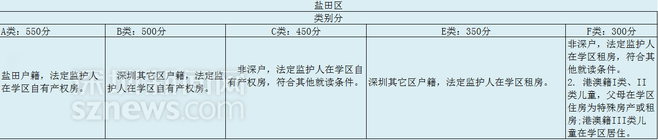 盐田区小一初一实行积分入学。