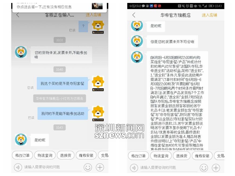 深圳消费者买了“夺冠套餐”申请退款被拒绝