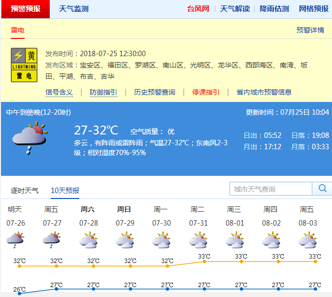 深圳新闻网讯 在热带低压残余环流影响下,鹏城昨日延续阵雨天气,局部出现大雨。市气象台预测,未来两天,仍有阵雨或雷雨,市民应注意防范。