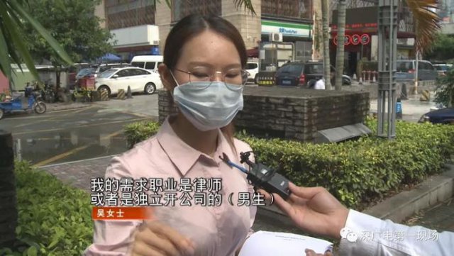 在听了吴女士对另一半的要求之后,世纪佳缘的红娘便立刻拿出了手机中所谓的优质男,开始向吴小姐介绍,介绍了一个是律师,家里是开律师事务所的,年薪收入有100多万,父母的素质教育都很高,爸爸也是律师,妈妈是政府单位上班的,希望找一个像吴女士这样温柔的,五官不错的女孩子。