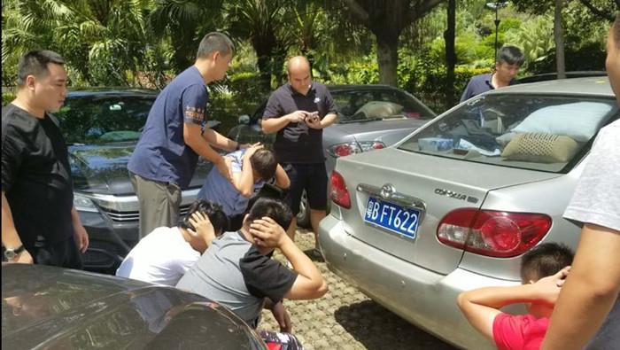 被警方抓获的嫌疑人。