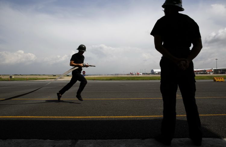 深圳机场飞行区内共有4个消防站,一旦发生紧急情况,消防战斗员就要迅速出动。无论是否有紧急情况,每天天再热,他们也不敢放松训练,以保证能以最好状态随时投入战斗。