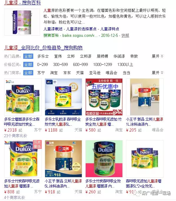 在搜索网页中输入“儿童漆”,发现儿童品牌种类众多,风格也十分多元化,可想而知,面对如此多的商品,也着实给想要选购油漆的家长出了难题。
