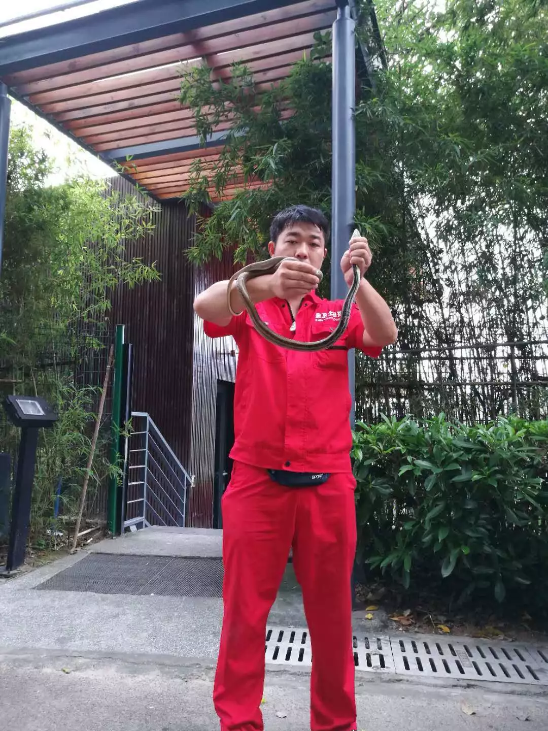 在长沙农村长大的他,小时候常常跟着村里的大人去抓蛇,久而久之,他便喜欢上在野外活动。上大学后,读的专业是有害生物防治技术,毕业后,他顺利进了一家有害生物防治公司。时光一晃,他就工作17年了。17年间,严白海走遍深圳各个区,大大小小的山地、公园、工厂、街道都留下了他的足迹。“我捕过最大的蛇有7-8斤,大约2米多长,比普通人的胳膊还粗。”严白海笑着说道。每年的捕蛇工作从3月开始,持续到12月。