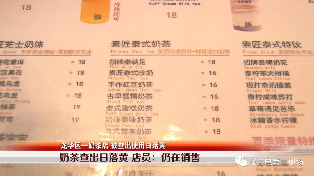 奶茶查出日落黄 店员:仍在销售