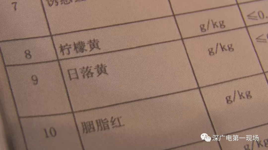据了解,本次抽检的检测机构是“深圳市计量质量检测研究院”,检测人员告诉记者,他们是依据国家(GB 2760-2014)国家食品添加剂使用标准,对样品进行检测。