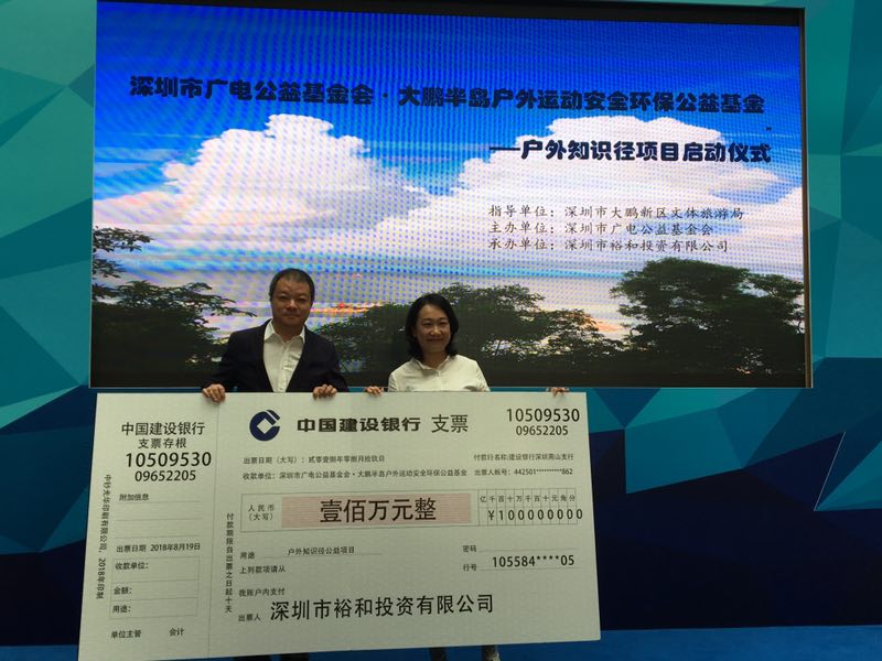 深圳新闻网讯 8月19日,深圳市大鹏新区大鹏半岛户外运动安全环保公益基金“户外知识径公益项目”启动。该项目由深圳市裕和投资有限公司,向大鹏户外基金捐资100万元,用于在大鹏半岛打造全国首条户外知识径道。