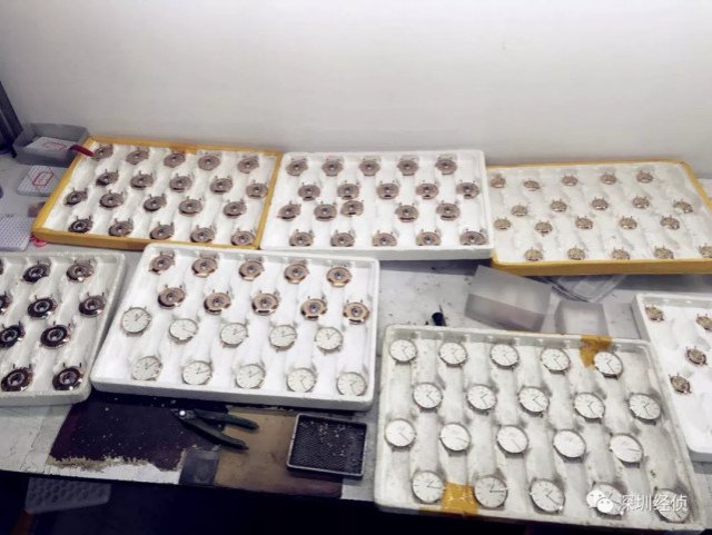 本次行动共出动警力110人,查处窝点13个,带回公安机关审查25人,刑拘12人。现场查扣假冒DW品牌手表13500块,表带、表壳、后盖等配件43000个以及包装盒、标签12000余个;查扣假冒Foreo品牌洁面仪成品195个,假冒BaByliss品牌美发棒成品409个、半成品和商标标识11194件。