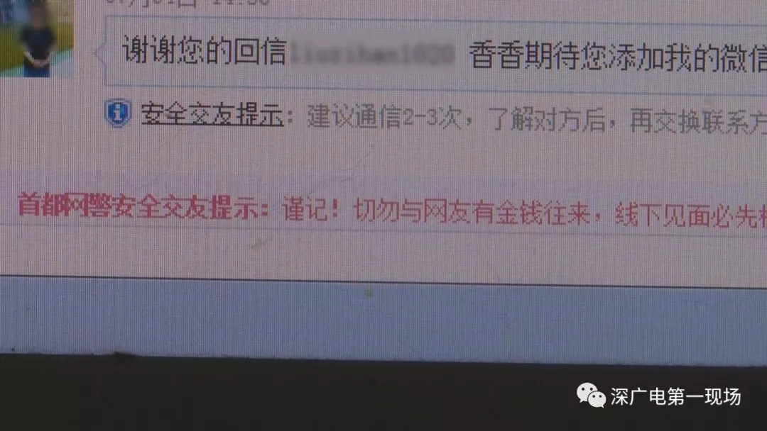 记者留意到,在婚恋网站聊天窗口上,男网友的信息下面就有一行安全提示信息,提醒警惕投资赌彩等诈骗行为。而在聊天界面下部还有首都网警的安全交友提示。