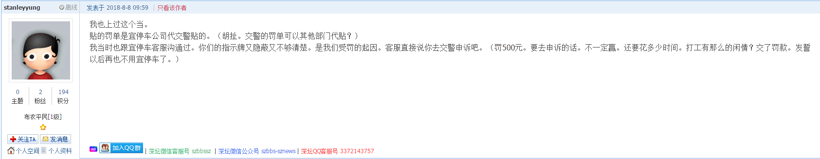 深圳新闻网8月29日讯(记者 施冰冰)“深圳的国资泊车位,对外地人来说是个坑。”网友wzmaodong在论坛上发帖吐槽深圳宜停车。该帖文主要描述了作者因对深圳泊车规则了解不清,继而被交警贴罚单的全过程,这让出差在外的他感到“很冤”。同时也有几位网友跟帖表示自己也交过这500元的“学费”。(《深圳的国资泊车位,对外地人来说就是个坑。在不知道深圳泊车规则的情况下,轻易的被交警贴罚单。》)