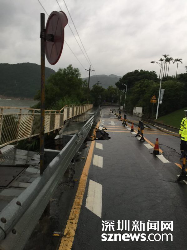 溪涌金海滩度假村路段发生路塌 深圳新闻网记者 古亮宇摄