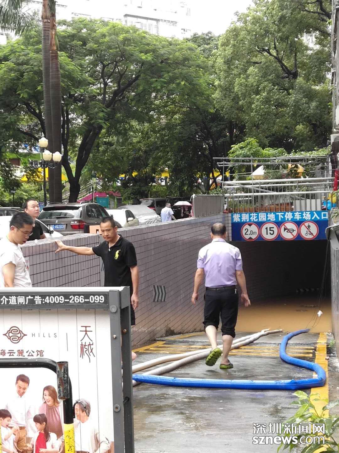 罗湖紫荆花园地下停车场被淹 工作人员正紧急处理 深圳新闻网记者 张俊摄