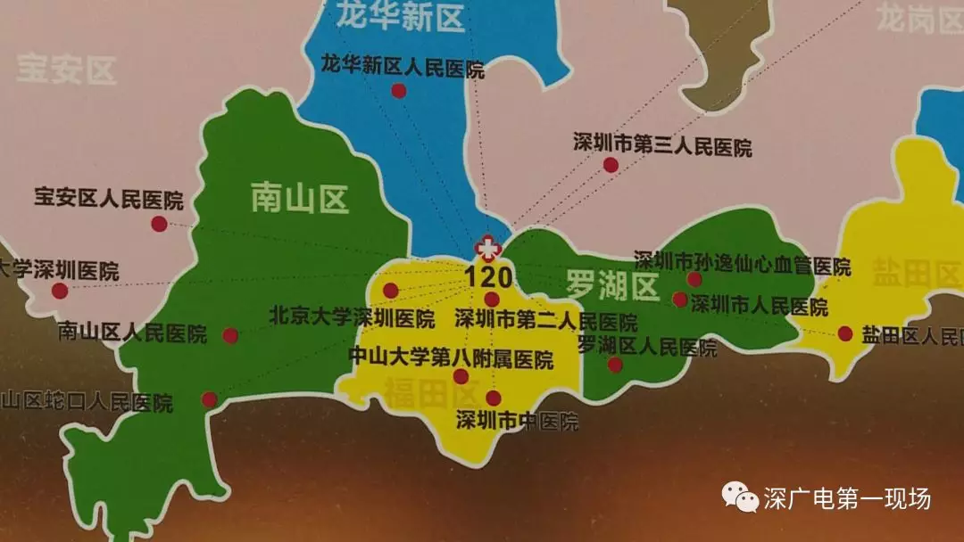 深圳范围内的患者一旦遭遇中风,该去哪个医院?120急救接到患者之后,又该送到哪个医院?在这张图上,一目了然。