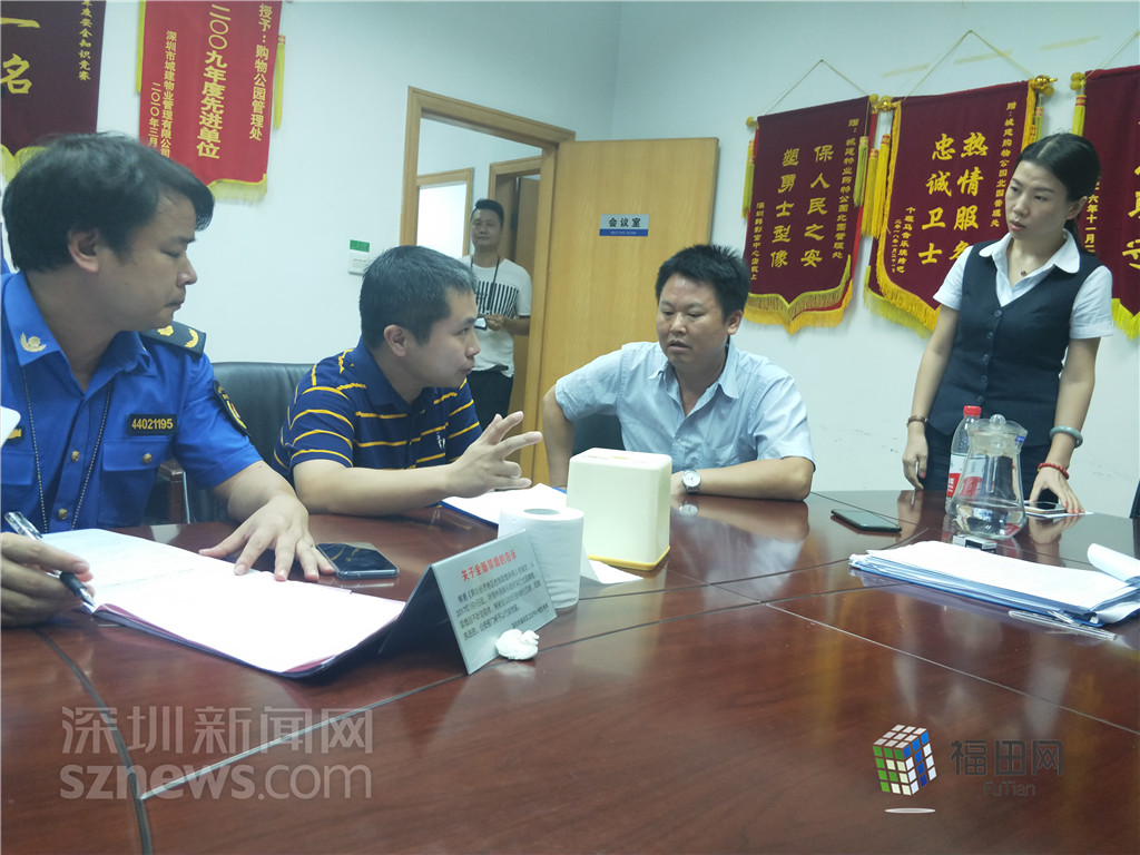 福田区城管局人员给购物公园北园管理处解释扣分项。