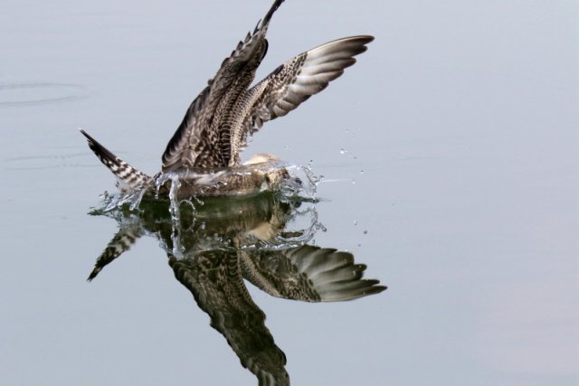不过,我也并非你们看到的那样柔弱。我们长尾贼鸥其实是一个有高度领土意识的物种,会捍卫巢穴周围的广大区域,驱赶入侵者,攻击任何靠近的食肉动物。这不,就在9月6日下午,一只叫"老黑"的黑耳鸢突然闯进我的领地,我跟它足足缠斗了近10分钟,从水面打到高空,最终还是成功地把它赶走了。在我和"老黑"激烈搏斗的时候,我听到了那些来看我的观鸟爱好者为我担心的喊声,谢谢你们,请你们别担心,黑耳鸢虽然看起来凶猛,但是它很难伤害我。