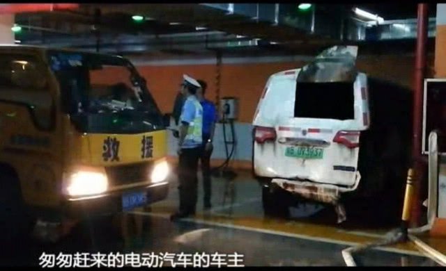 现场视频显示,当时浓烟非常大,停车场内的保安全部被疏散撤离到上面来,消防员员背着灭火器,带着氧气罩冲下去救火,对冒着浓烟着火的电动汽车进行灭火。