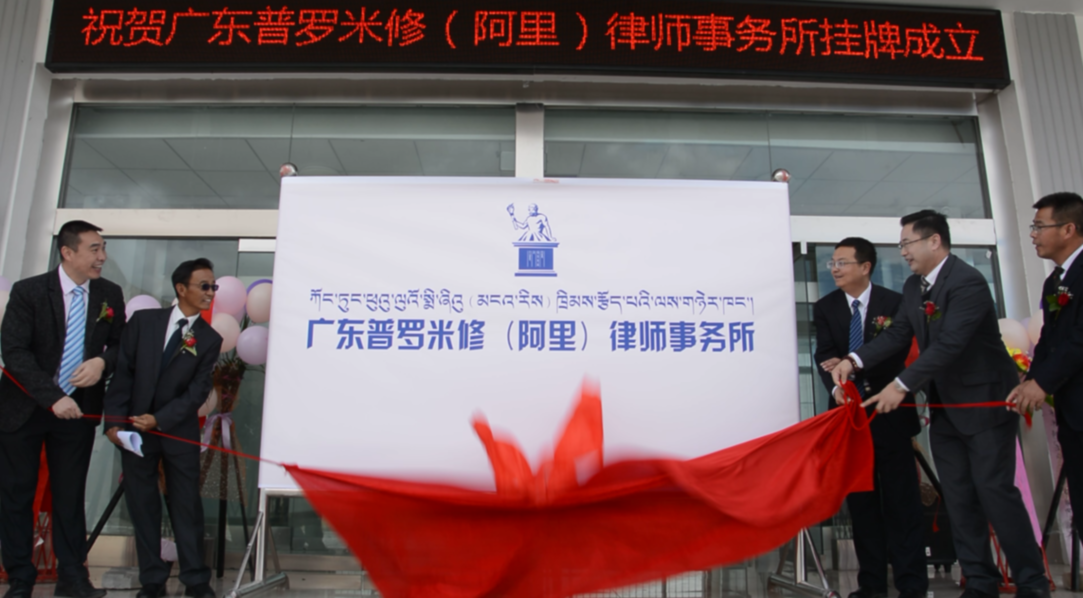 据了解,阿里地区千山之巅,万水之源,属世界屋脊的屋脊,是我国法律服务欠发达地区,面积30.5万平方公里,总人口10多万人,是孔繁森三度援藏工作过的地方,因其事迹的宣传而知名。该地区所属7县没有一家律师事务所,更没有一名执业律师,是法治建设和律师发展的“洼地”。2018年2月,受西藏自治区阿里地区司法处的邀请,广东普罗米修律师事务所和阿里司法处达成共识,决定筹建普罗米修(阿里)律师事务所。3月1日,该所在全国发布征集赴普罗米修(阿里)律师事务所法律服务志愿律师,52名来自湖南、云南、青岛等地的志愿律师踊跃报名;3月20日,首批4名法律服务志愿律师启程赴阿里,在阿里司法处的支持下,为阿里地区藏民提供法律服务、到中印边境村庄什布奇村开展宪法宣讲解、在地区街头为藏民开展法制宣传活动,受到了当地政府和群众的热烈欢迎和拥戴。8月24日,西藏自治区司法厅正式批复,准予设立普罗米修(阿里)律师事务所。