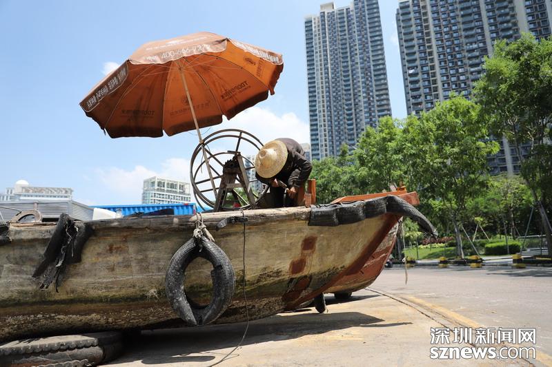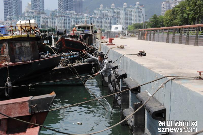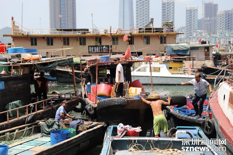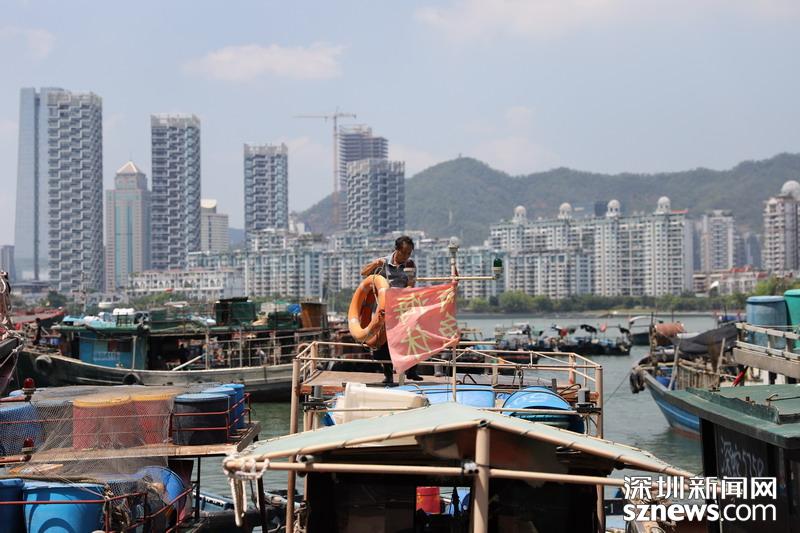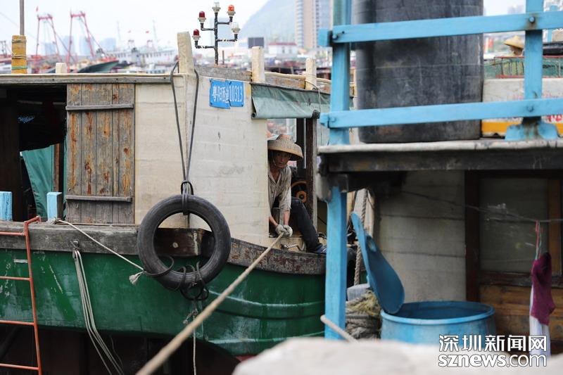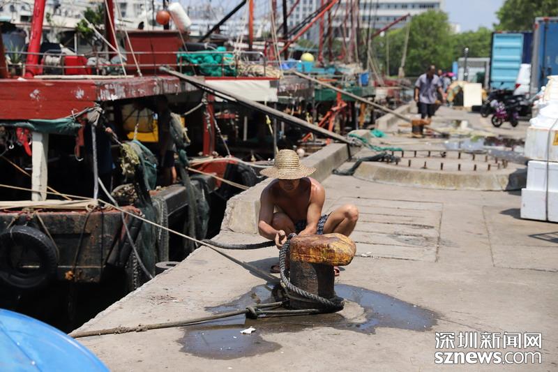 2018年9月15日,蛇口渔港,渔民加固船只,回港避风。(深圳新闻网记者 杨浩翰 摄)