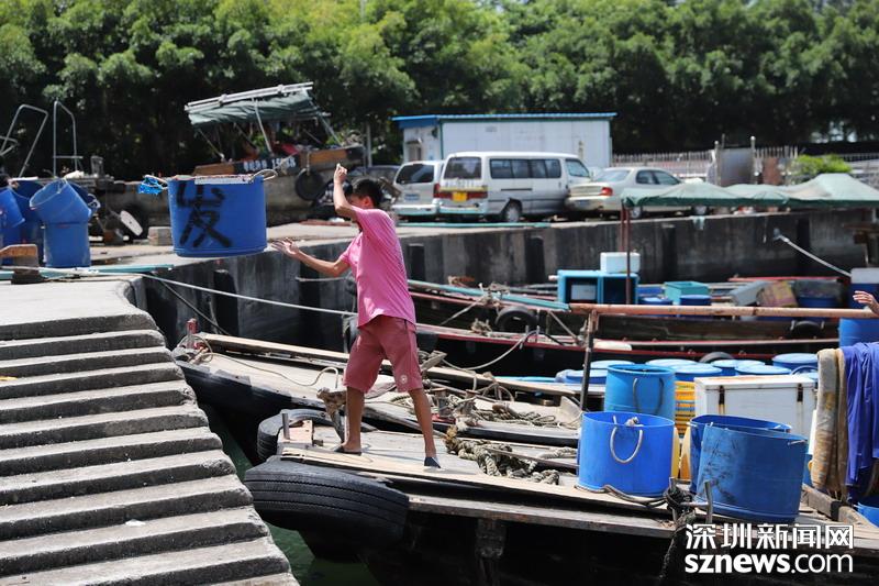 2018年9月15日,蛇口渔港,渔民加固船只,回港避风。(深圳新闻网记者 杨浩翰 摄)
