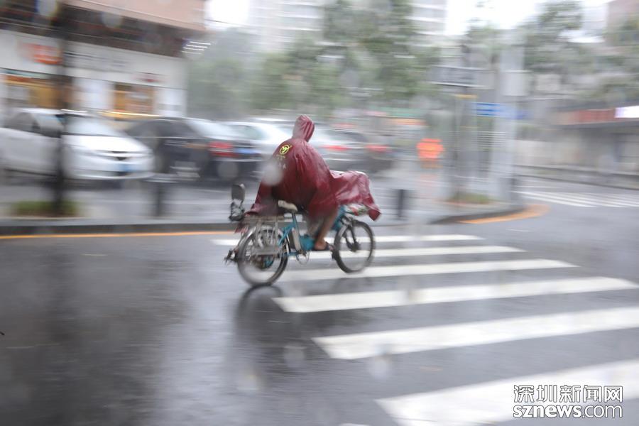9月16日早上10点13分,福田新洲,一名骑士在雨中前行。(摄影:杨浩翰)