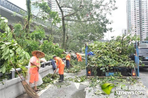 路面的树枝太多,不一会儿环卫工人已经清扫了一车,它们将被运走并进行专业处理。