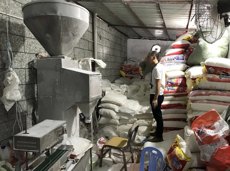 执法人员来到位于龙东社区同昌路的一个工业区进行突击检查。刚进入该工业区,执法人员就发现有几间铁皮房大门紧锁,通过门缝还能看到大量各品牌的洗衣粉、消毒液,以及各式设备数台。经检查,现场共有这类铁皮房3个,分散在工业园区3个不起眼的角落,占地面积超过200平方米。铁皮房内环境恶劣、电线乱搭,地上堆满各种标识的加工原料以及各种日化品牌的包装袋,数量巨大。