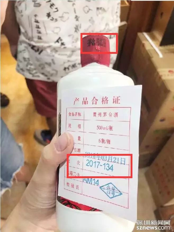 执法人员支招,从以下方法入手:一般每箱茅台都有对应的产品合格证,合格证上有相关批次数字,如果合格证上的批次数字与茅台开口处所写的批次一样的话,为真茅台概率很高。如图,合格证和茅台瓶口的数字皆为2017-134,为真酒,市民可放心饮用。