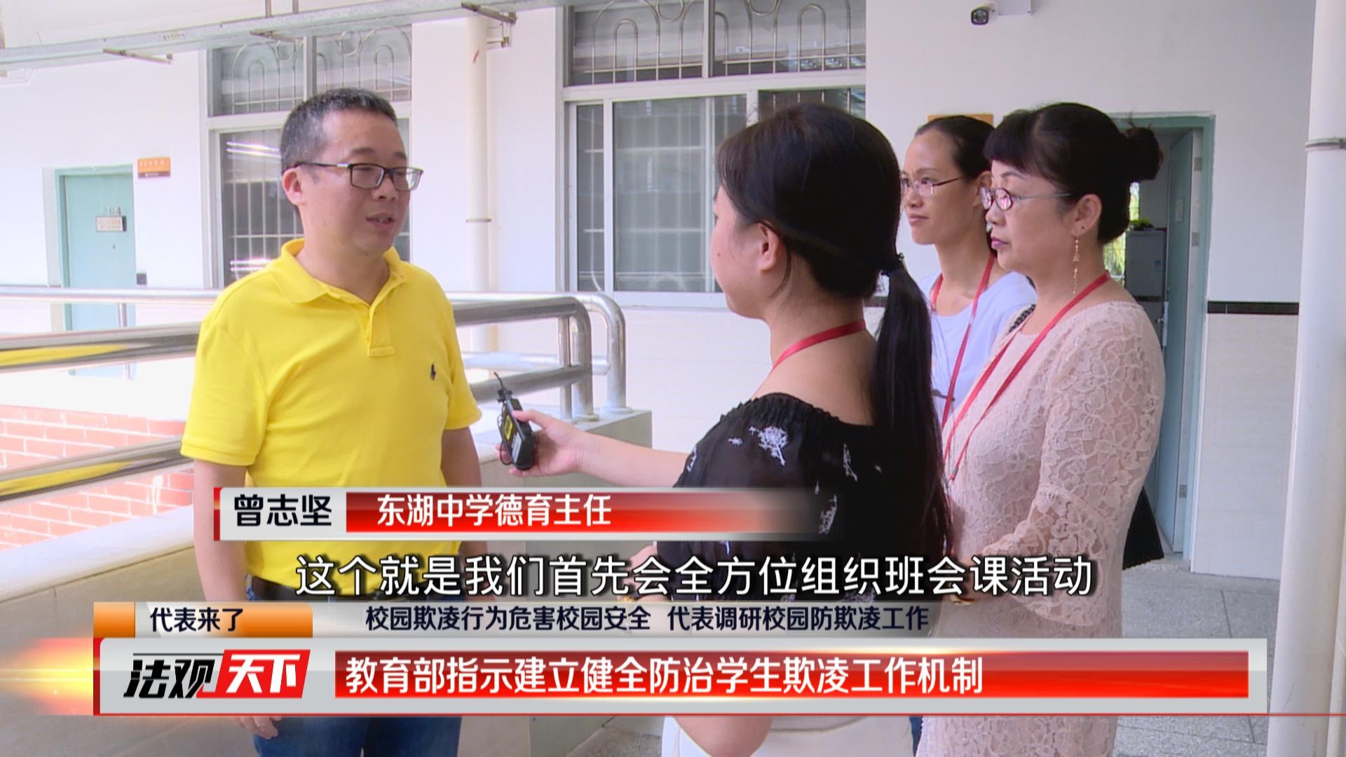 龙华大浪爱义学校,2016年12月份曾经发生过学生被逼下跪自扇巴掌的恶性校园事件。而在该事件发生之后,学校就自发成立了教师督导队,加强上下学期间校园周边的巡查力度,及时排查隐患,防止校园欺凌事件的再次发生。胡春华、肖莉珍、宋敏三位人大代表在龙华大浪爱义学校内视察调研,他们发现该学校防校园欺凌的宣传工作值得点赞。龙华大浪爱义学校校长舒尾平告诉人大代表,在防止校园欺凌的问题上是非常积极去面对的,召开主题班会、宣传公告、设置举报信箱等,特别注重德育,引导孩子们注重品德,友爱相处,从根源上杜绝校园欺凌。