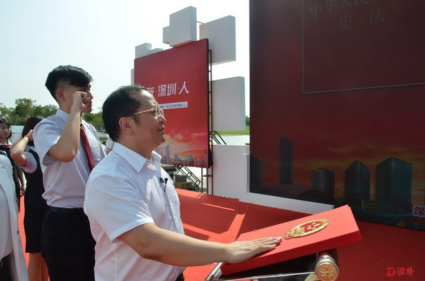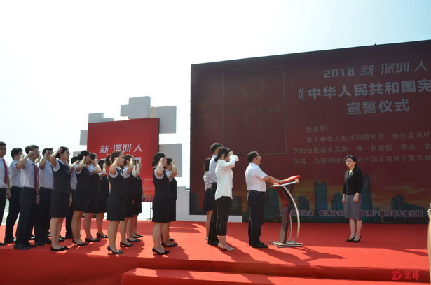 深圳新闻网讯 “我宣誓:忠于中华人民共和国宪法,维护宪法权威,履行宪法规定的公民基本义务,做一名爱国、敬业、诚信、友善的守法市民,为深圳建设法治中国示范城市努力奋斗!”