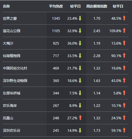 22日12时至今日12时,我市热门景区交通压力较平日有明显上升,拥堵高峰大部分出现在22日16时至17时,热门景区周边道路较为拥堵的有:莲花山公园、仙湖植物园及深圳欢乐谷。