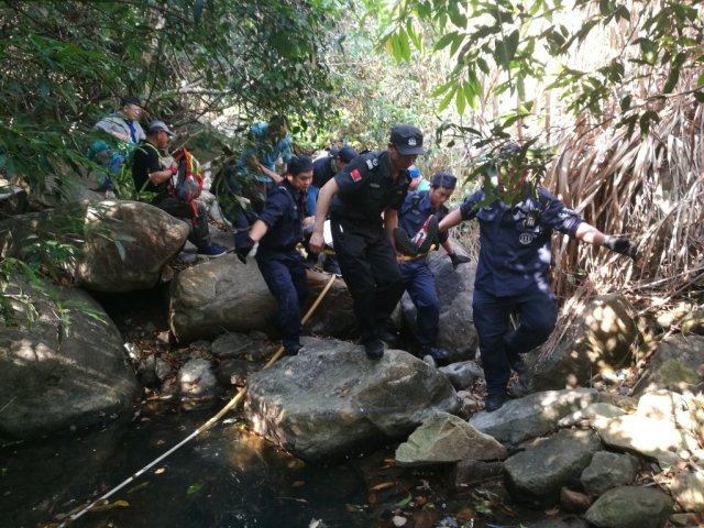 今年4月22日13时40分许,盐田分局巡警大队接到指挥中心指令,有人报警称爬山时在平盐线盐田坳一处山谷有一名男子受伤,急需援救。接警后,巡警大队值班领导立即集结各巡段警力赶往现场救援。由于山路崎岖、雨湿路滑,民警们历经半个多小时才到达现场。