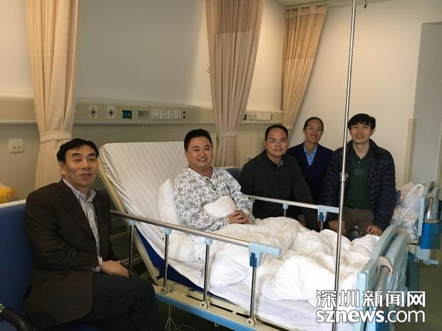 人大代表杨勤(左一)看望治疗中的周明明(左二)