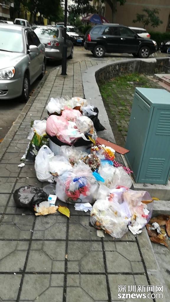同时,小区整体配备保洁人员数量偏少,每个人要负责的保洁区域面积过大,所以经常是居民楼道几天打扫一次,十天半月才拖一回地。小区居民楼、公共区域垃圾随处可见;垃圾袋、垃圾桶污秽不堪,而且由于搜集的垃圾清运不及时,往往污液横流,臭气熏天。