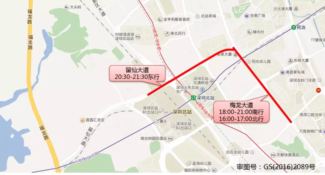 宝安大道(14:00-15:00南行、16:00-18:00南行、17:00-18:00北行)