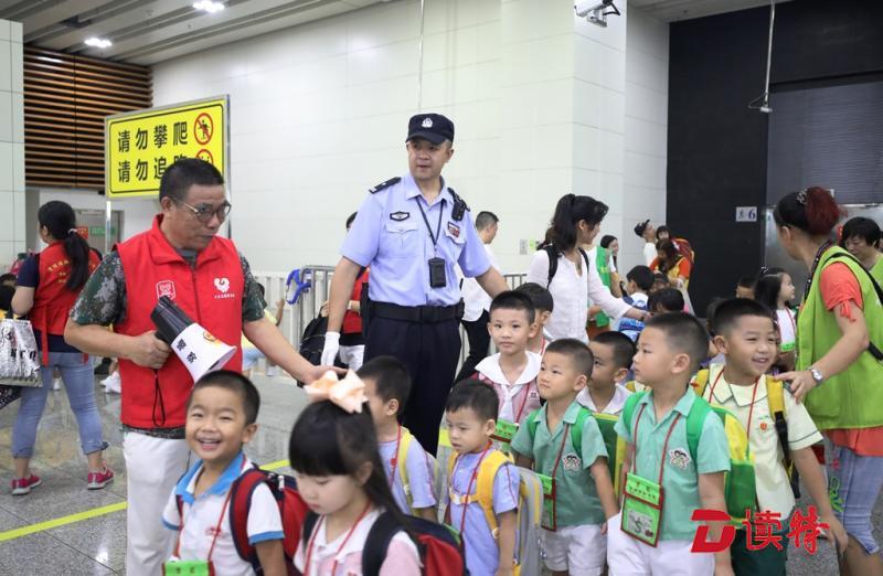 边检民警与深圳义工在福田口岸出境大厅悉心呵护跨境学童安全快捷通关。黄俊生摄