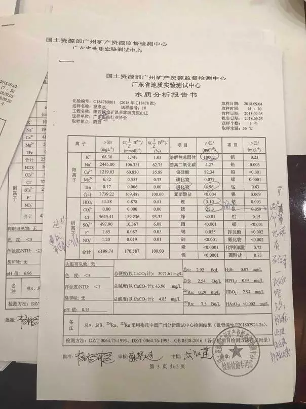 例如,河源的叶园温泉度假酒店的温泉偏硅酸含量达137毫克/升,达到命名矿水浓度50毫克/升的国标;氟离子达8.01毫克/升,远高于有医疗价值浓度1毫克/升的国标;氡含量约49.5贝克/升,高于有医疗价值浓度37贝克/升的国标。