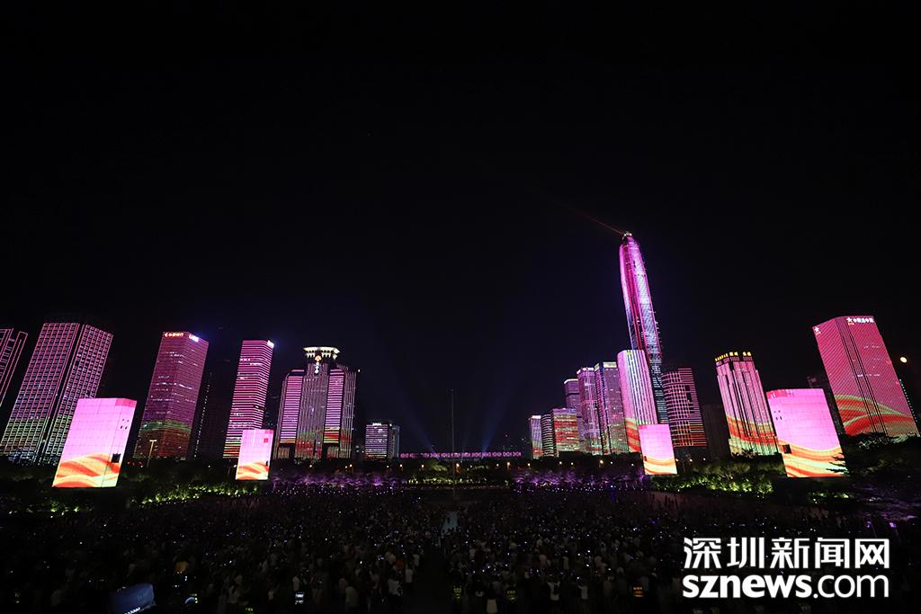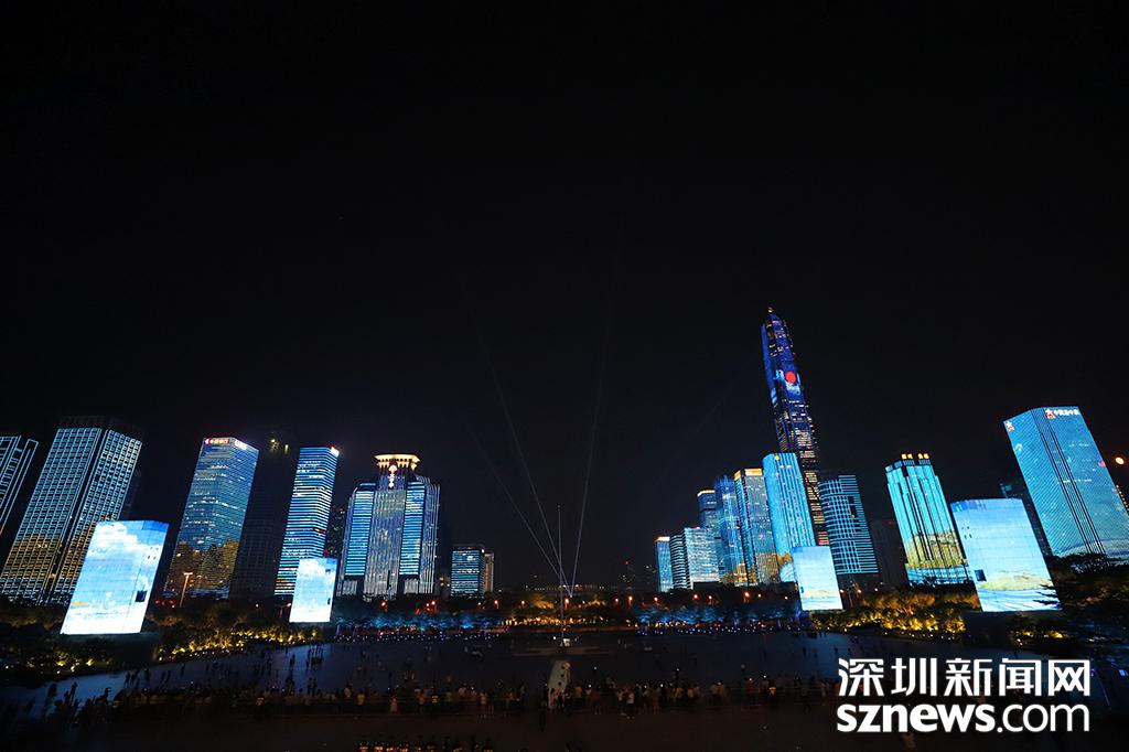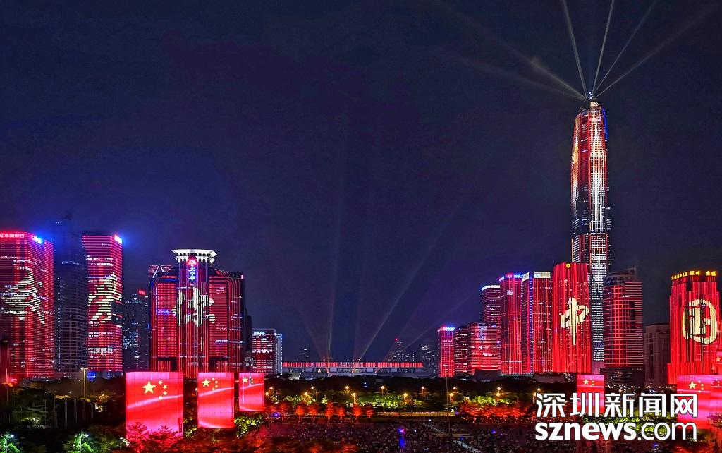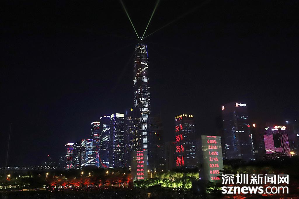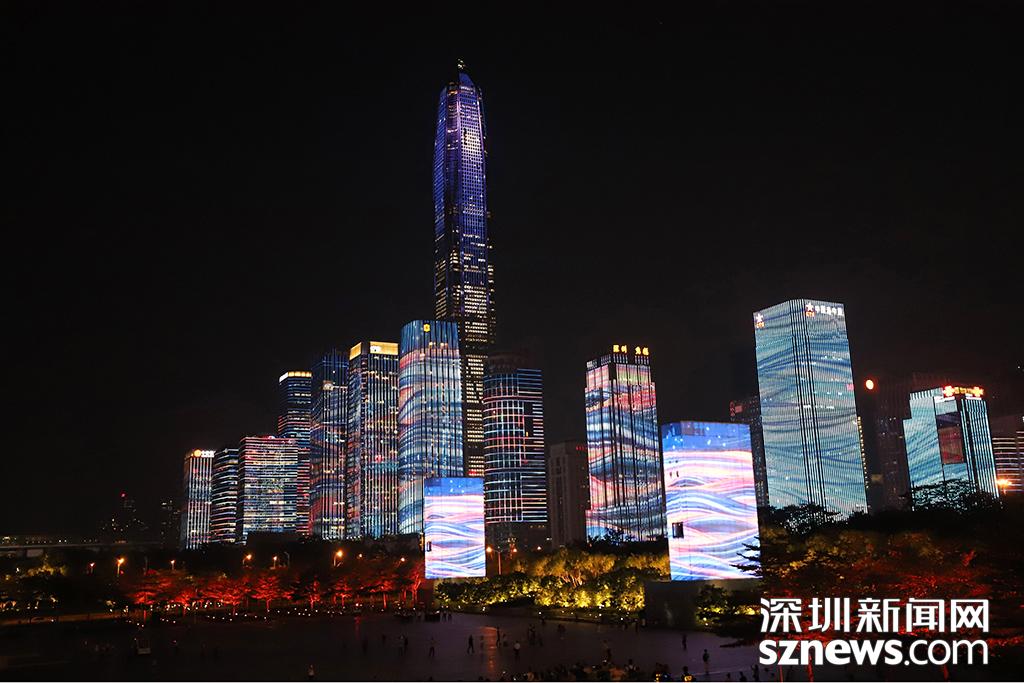 深圳新闻网9月29日讯(记者 钟鸿冰 杨浩瀚 刘庆康 涂胜 实习生 张林羽 通讯员 崔嵩)为庆祝改革开放40周年,9月28日,“辉煌新时代”深圳中心区灯光表演正式首秀。“辉煌新时代”灯光表演包括山海之城、改革之窗、创新之都、和谐之境四大篇章。在市民中心周围,以平安大厦为地标,通过中国古典风及波普艺术等不同表现手法和智能管控技术,实现43栋楼宇灯光联动,点亮流光溢彩的中心区璀璨夜景。