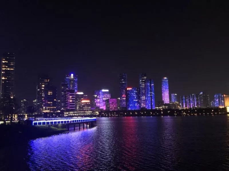 推荐理由:周边视野开阔,基本能将灯光秀全景收入眼底,水中光影别有一番美感。