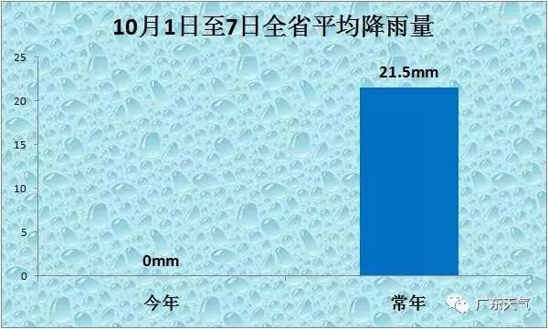 10月1日到7日,全省平均雨量:今年0mm,常年21.5mm,1951年以来最少。