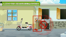 ⑥:请勿在电瓶车周边放置易燃品和使用明火