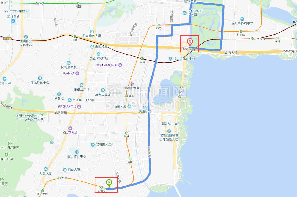 百度地图中滨海沙河西立交到深南沙河西立交的骑行路线