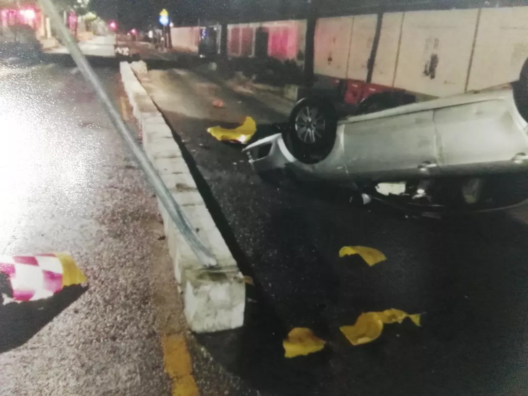 2018年9月22日凌晨4时30分许,深圳交警接报称在坪山区马峦街道坪环路心海城路段发生一起小车与路中间隔离水泥墩发生碰撞导致车辆侧翻的道路交通事故。