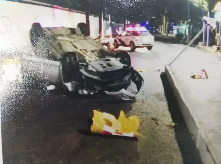2018年9月22日凌晨4时30分许,深圳交警接报称在坪山区马峦街道坪环路心海城路段发生一起小车与路中间隔离水泥墩发生碰撞导致车辆侧翻的道路交通事故。