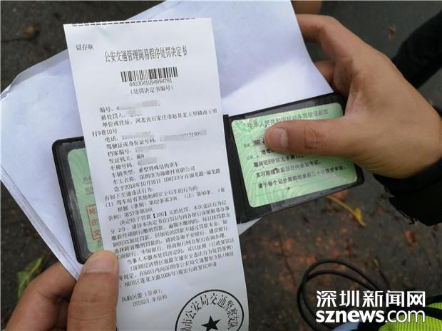 深圳交警对泥罐车司机开出罚单:罚款100元扣2分