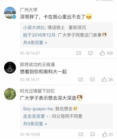 网友表示“同意这门亲事!”“想看到你和南科大一起”