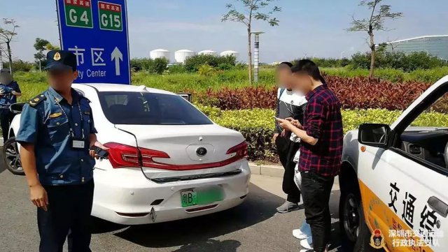 行动过程中,执法人员在空港六道发现一辆车牌号为粤 BF*****的白色小轿车形迹可疑,于是上前准备示意该车司机停车接受检查,不料该车司机突然停车并迅速向后倒车试图逃跑。