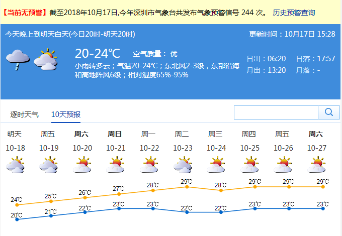 市气象局发布未来十天天气预报(数据更新于10月17日15时28分)