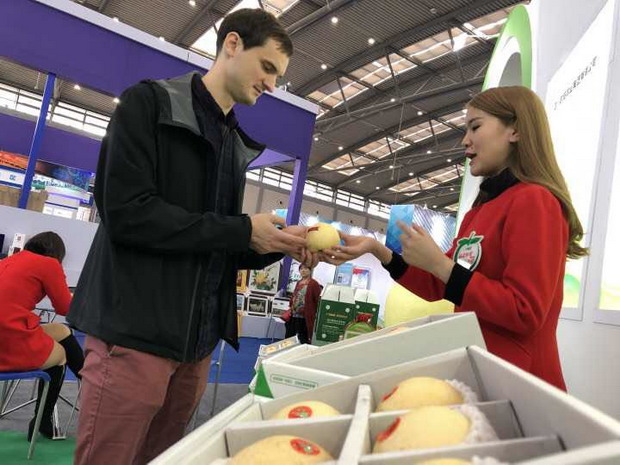 酸甜可口的龙安柚、金黄香甜的广安蜜梨、香郁味醇的松针茶叶等优质农产品一个个整齐地摆放在广安展区展台上,引得众多中外客商驻足品尝。“这种梨子又大又甜,很好吃!”在广安蜜梨展台,一位中文名叫高明的外国友人拿着一个蜜梨,正津津有味地品尝着。据现场工作人员介绍,广安蜜梨果形美观,风味独特,具有果心小、果肉细嫩、汁多味甜等特点,被认定为中国地理标志保护产品、全国名优特新农产品、全国名优果品区域公用品牌。