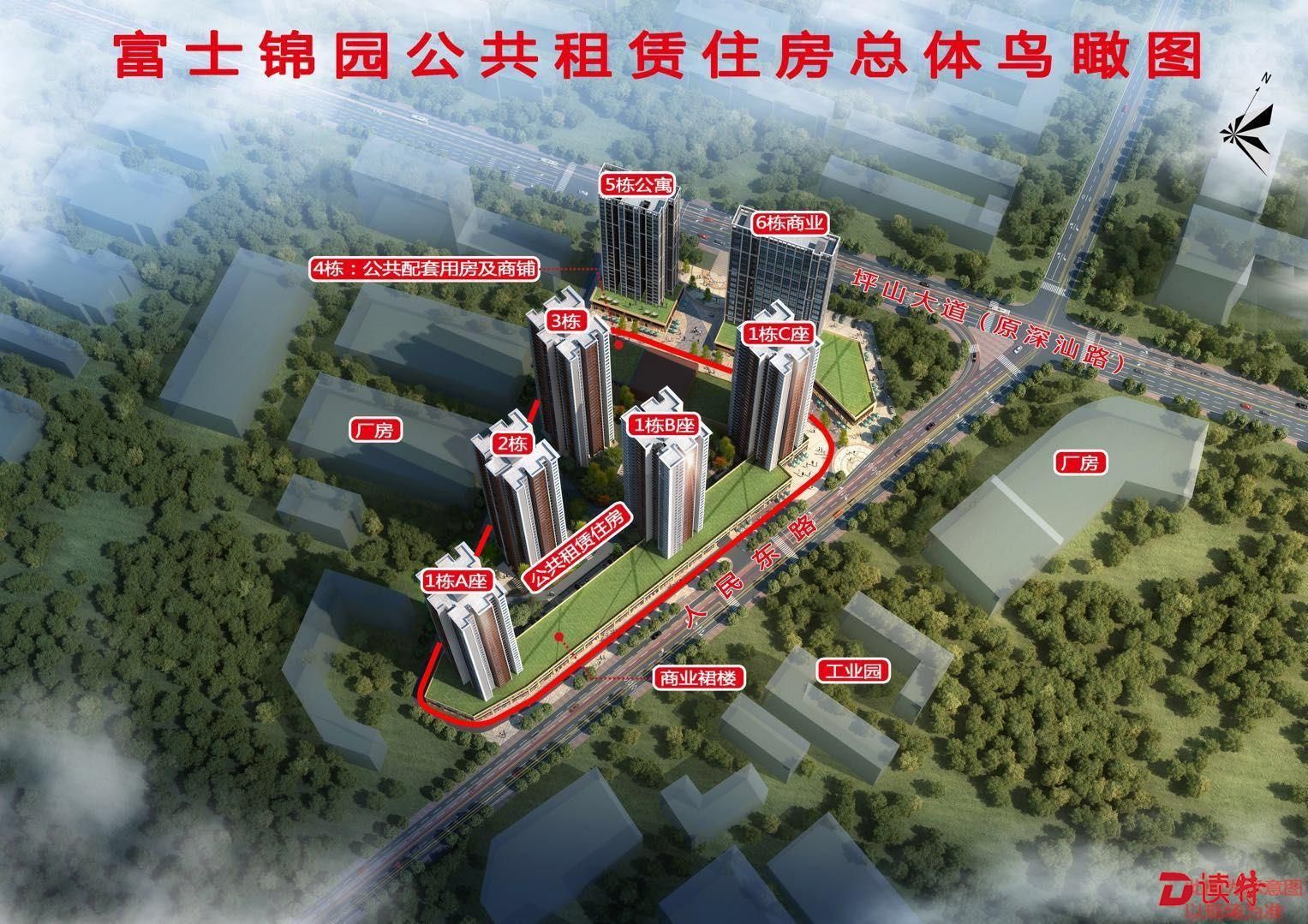 富士锦园位于坪山区坑梓街道沙田社区坪山大道(原深汕路)与人民东路交叉口西南角,预计2019年8月底前交付使用。该项目共有公共租赁住房1148套。面向全市公共租赁住房的在册轮候人配租。该公租房项目基准租金标准暂为14.49元/月平方米;物业管理费暂为2.95元/月/平方米。