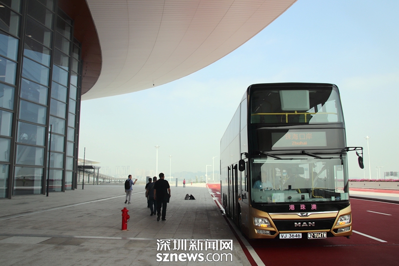 又一辆穿梭大巴抵达港珠澳大桥珠海口岸大楼